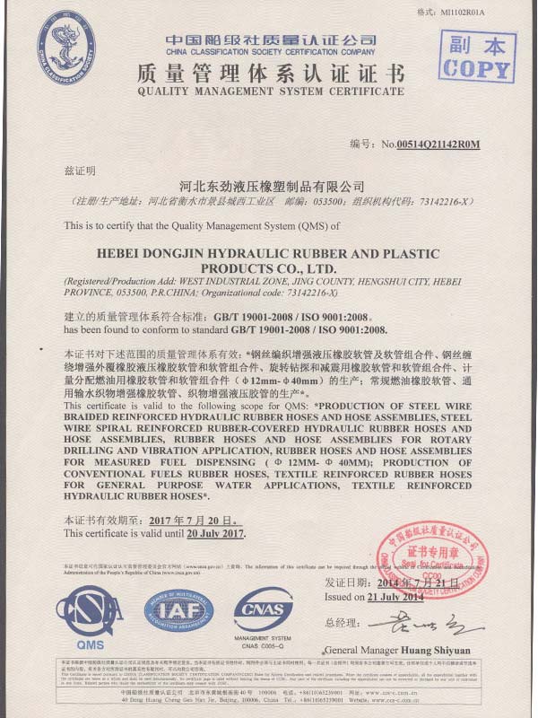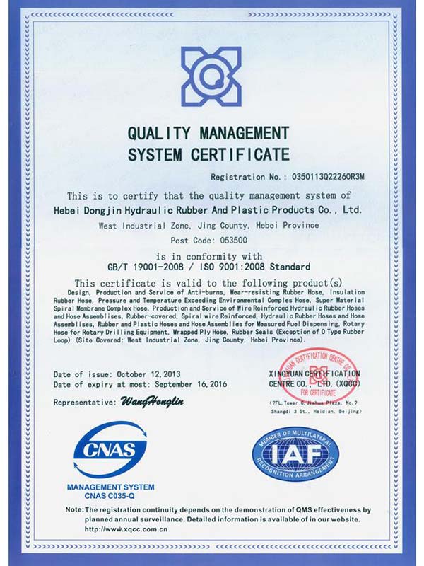 注冊資金7000萬,生產(chǎn)設(shè)備300多臺套,檢測設(shè)備300多臺件,膠管900萬標米,各類管件接頭2億余件,膠管組合件1億余套。