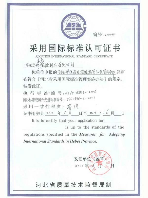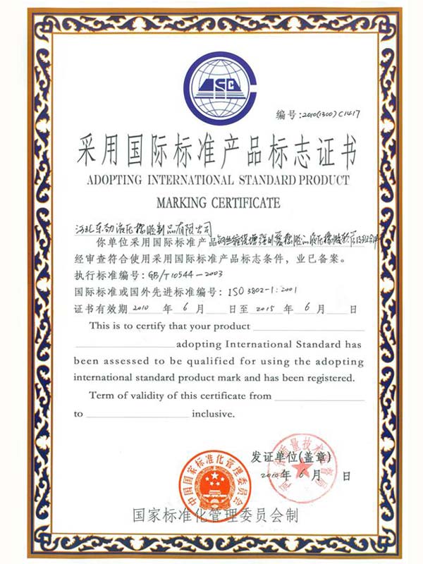 • 鋼絲纏繞管國際標準產(chǎn)品標志證書